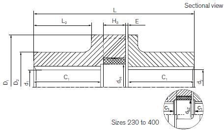 d1kmax = Max. bore diameter d1 with keyway acc.
